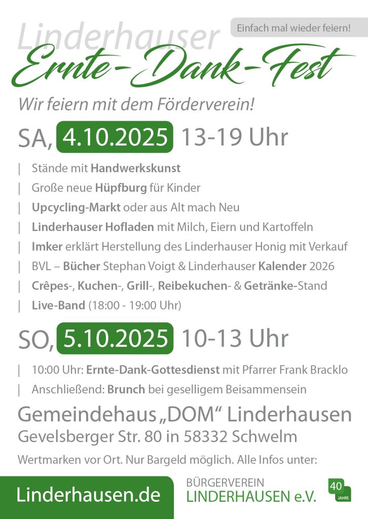Linderhauser Ernte-Dank-Fest 2025 am 4. + 5.10.2025